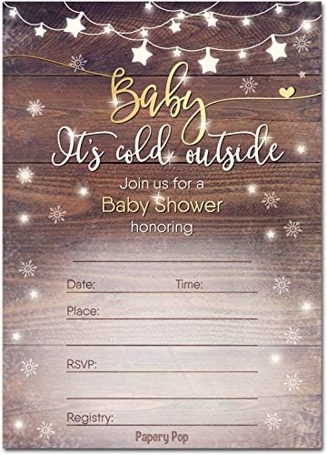 Amazon Com 30 Baby Shower Invitations For Boy Or Girl With Envelopes 30 Pack Baby It S Cold Outside Gender Neutral Fits Perfectly With Rustic Wooden Baby Shower Decorations And Supplies Home Kitchen